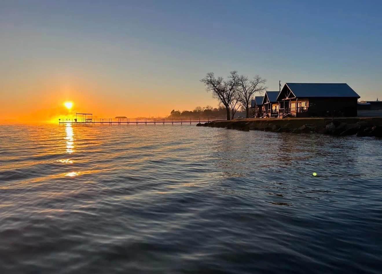 The Cabins: Our 4 private aspen style cabins await you with incredible open water views literally steps from some of the most prime open water on Lake Tawakoni. Enjoy unmatched sunrises from amenity filled luxurious style cabins with all the traits from home.